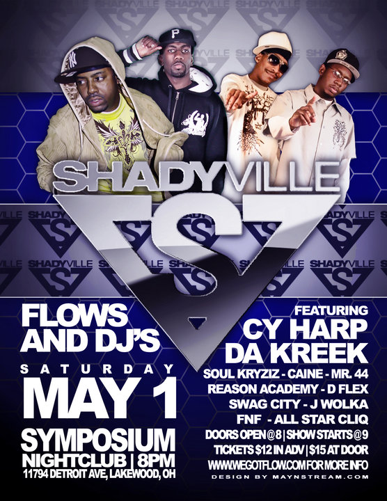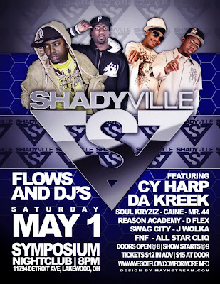 After the success of the We Got Flow Tour (3 sold out shows in CLEVELAND, KENT, & YOUNGSTOWN), Shadyville DJ's and We Got Flow has teamed up to bring you the best artist showcase in the midwest. Pulling in artists from all over the midwest to display their talents, lyricism, and showmanship on stage!